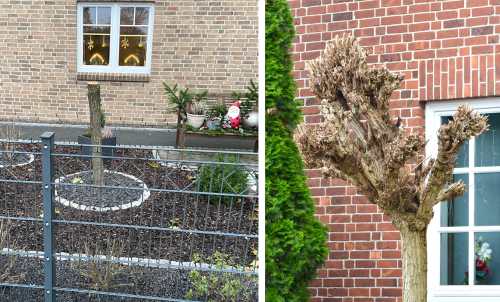Gehölze, die nach regelmäßigem Rückschnitt verlangen, weil der Pflanzplatz einst falsch gewählt wurde (zu dicht am Weg, zu dicht an der Fassade), sollten womöglich entfernt und dann durch Arten mit geringerer Endgröße ersetzt werden. Alternativ wird die Schnitt-Verstümmelung regelmäßig mit jeder neuen Saison fortgesetzt.